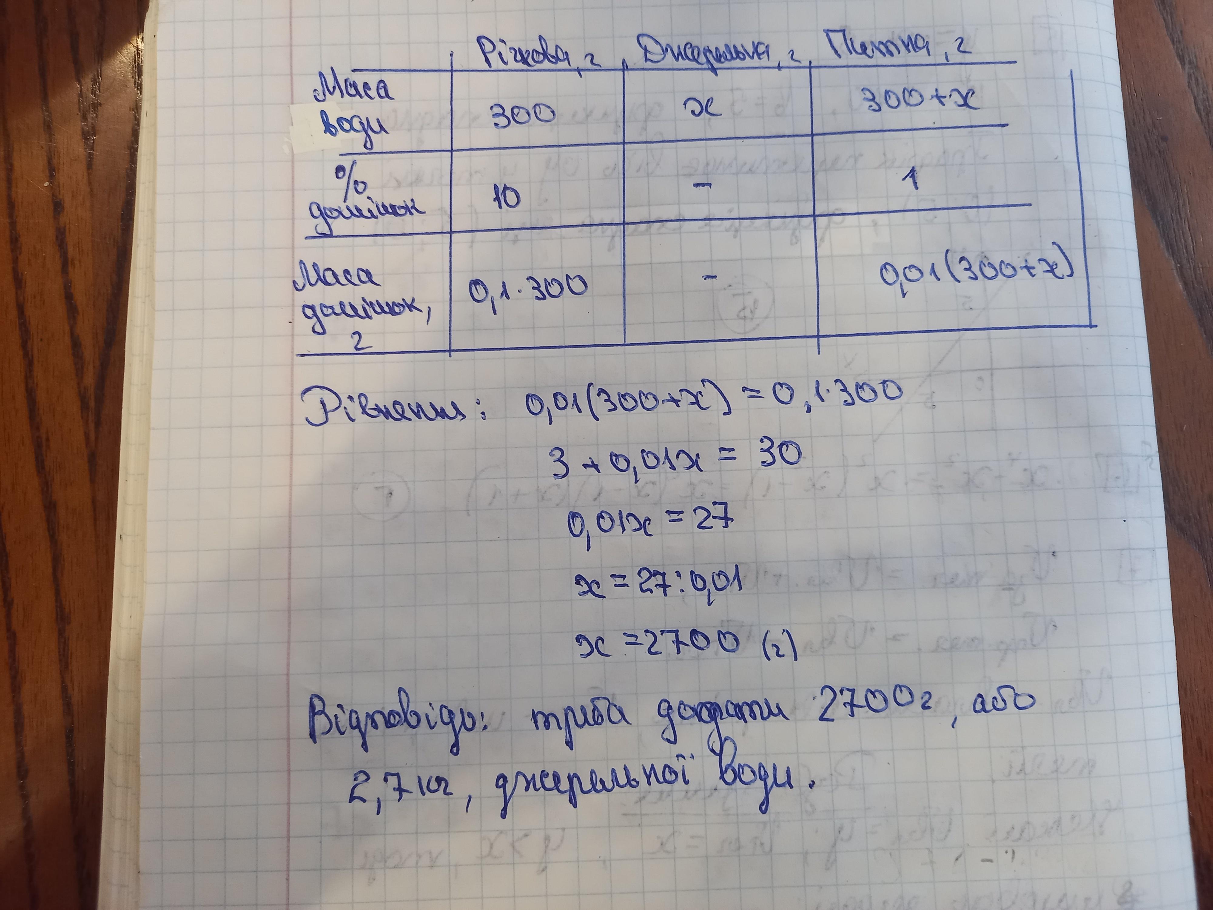 В 300 грамах води грамів домішок. Нехай потрібно додати