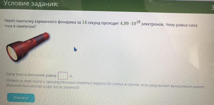 Сила тока в лампочке карманного фонаря равна 0.57 А.