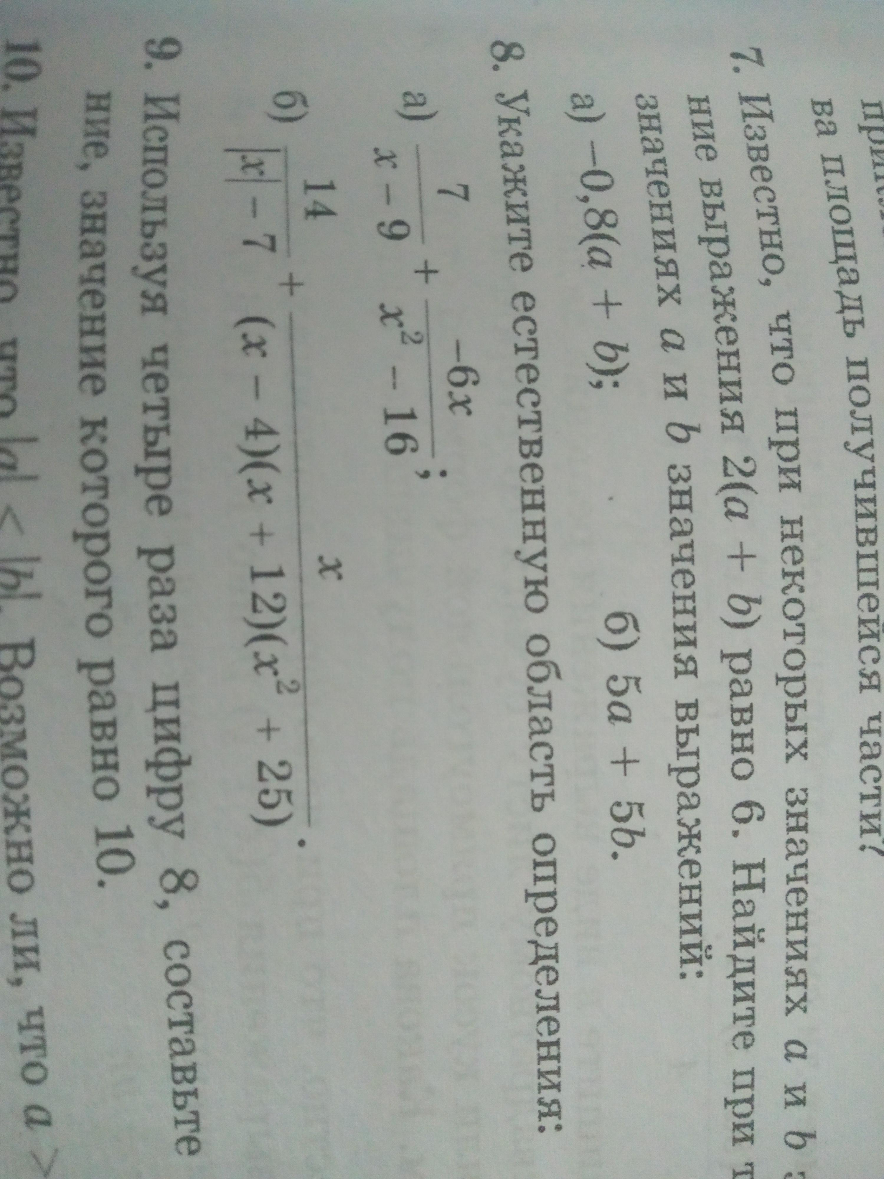 Помогите пожалуйста решить номер 8. По алгебре. На тему: Область определения выражения с переменными.
