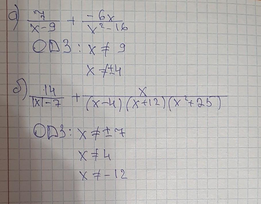 а) х не равен -4; 4; 9( тк на 0 делить нельзя, а при этих числах знаменатели обращаются в ноль)