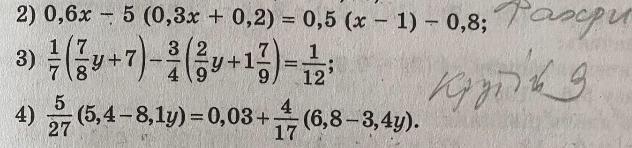 2) 0,6х-5(0,3х+0,2)=0,5(х-1)-0,8