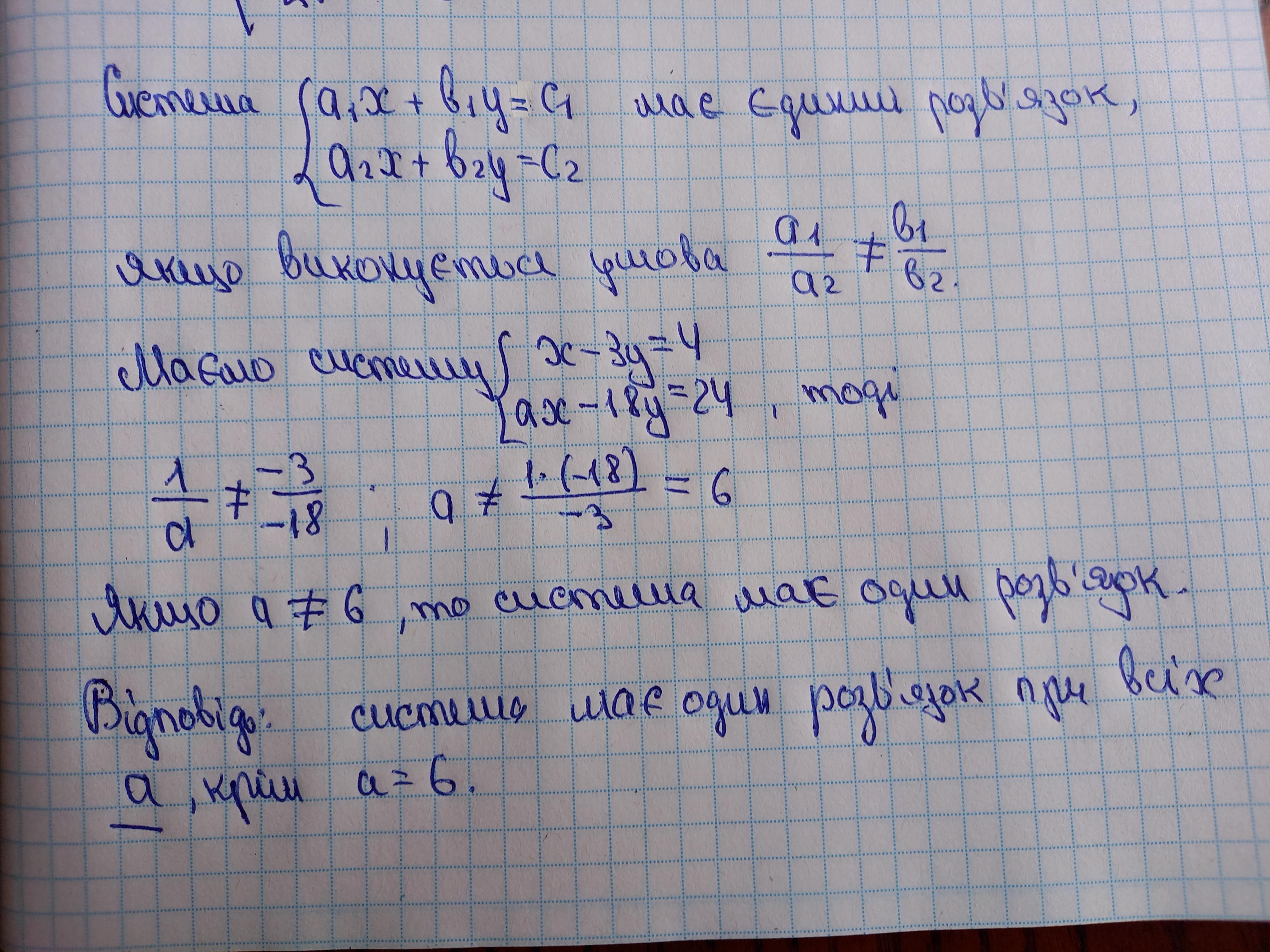 Cистема имеет единственное решение, если коэффициенты при неизвестных не пропорциональны .