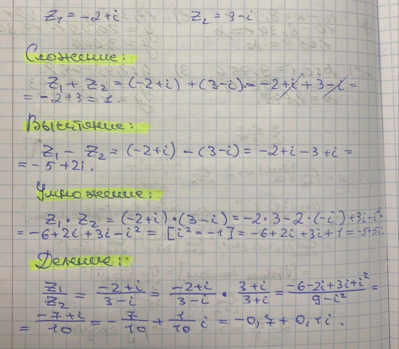 Комплексное решение чисел (сложение, вычитание, умножение и деление)