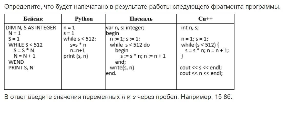 Определите, что будет напечатано в результате работы следующего фрагмента программы.