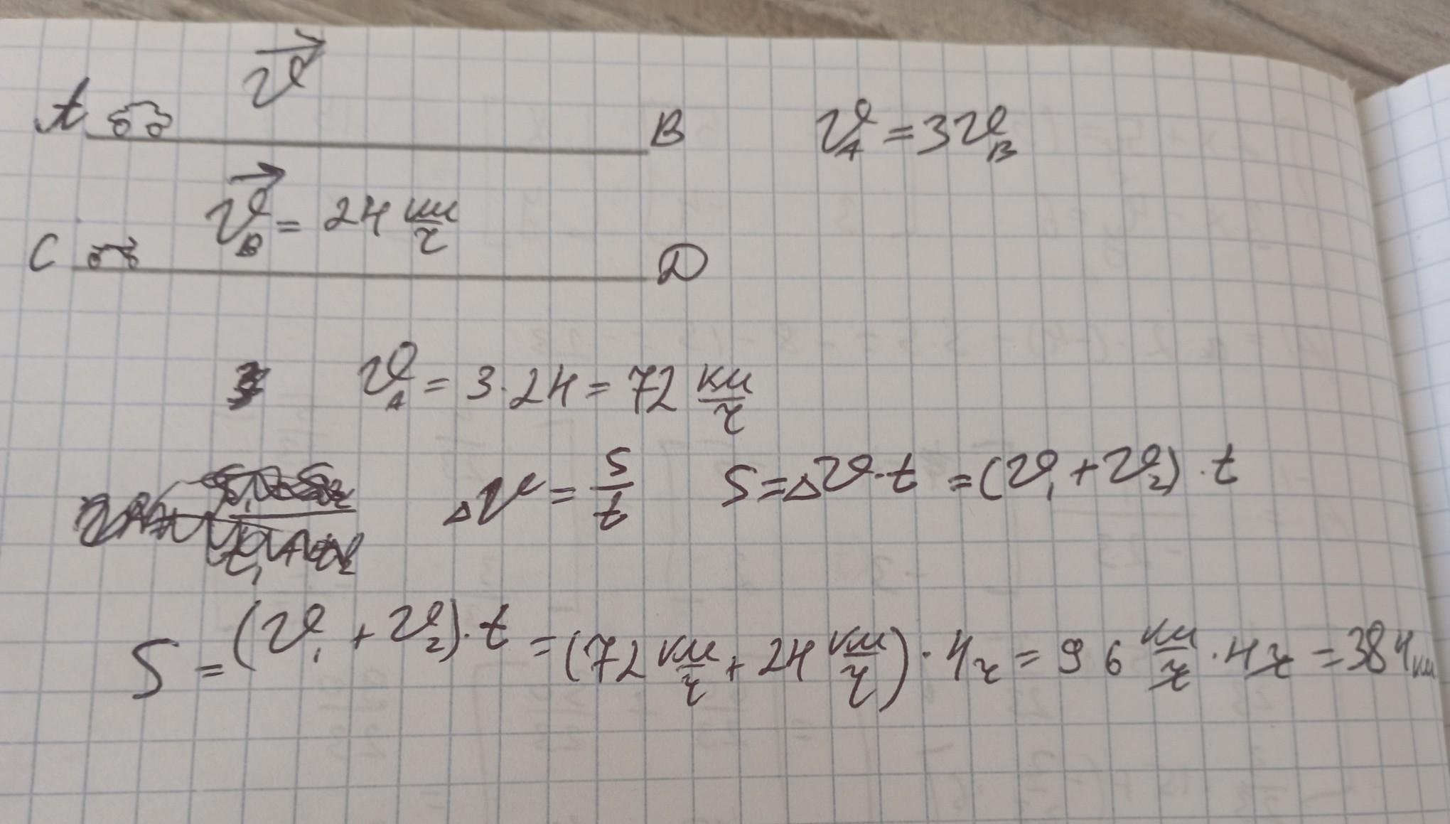 3) Из одного пункта одновременно в противоположных направ- лениях выехали велосипедист и автомобиль. Скорость велосипедиста 24 км/ч, а скорость автомобиля в 3 раза больше. На каком расстоянии друг от друга будут велоси- педист и автомобиль через 4 ч?