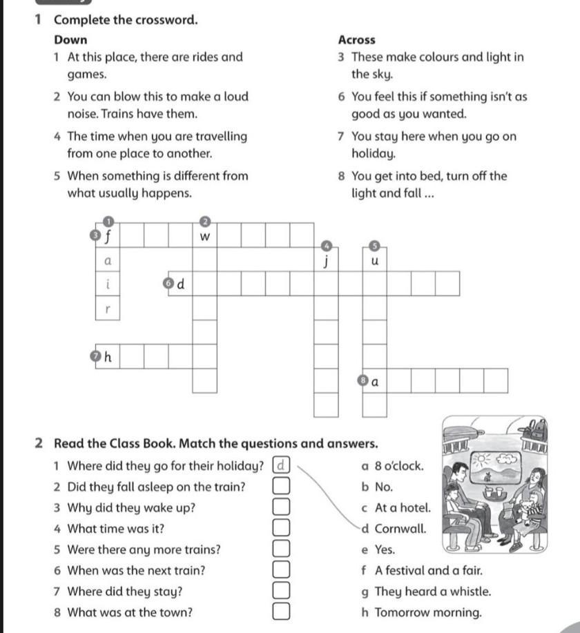 1.1. fair 2 whistle 3..journey 5 .unusual 3- . 6.- 7.hotel 8.sleep