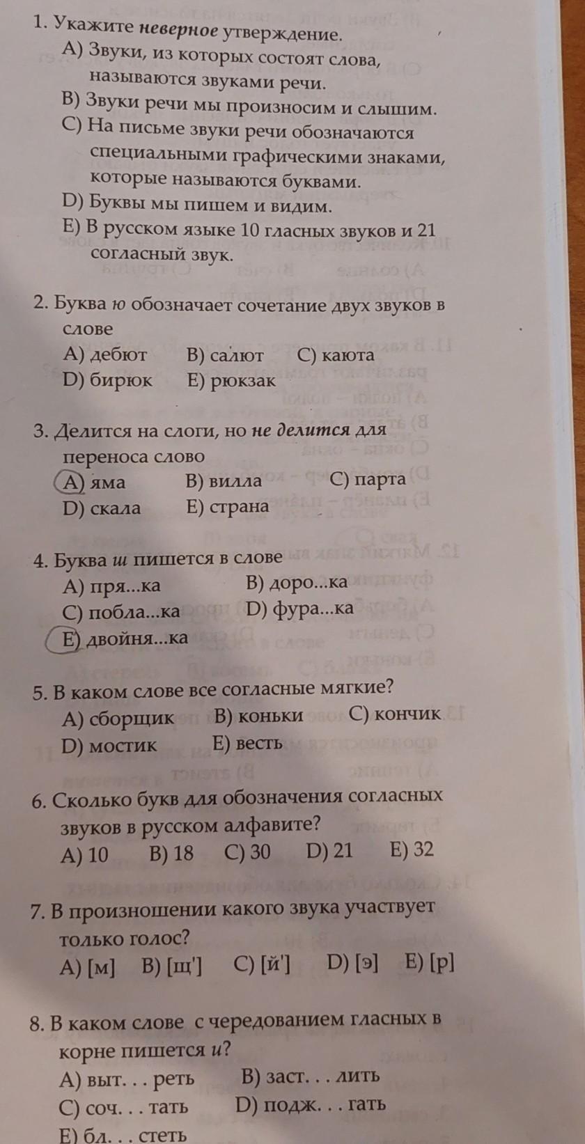 1. В русском языке 6 гласных звуков и 36 согласных звуков. Поэтому ответ под буквой Е - неверный.