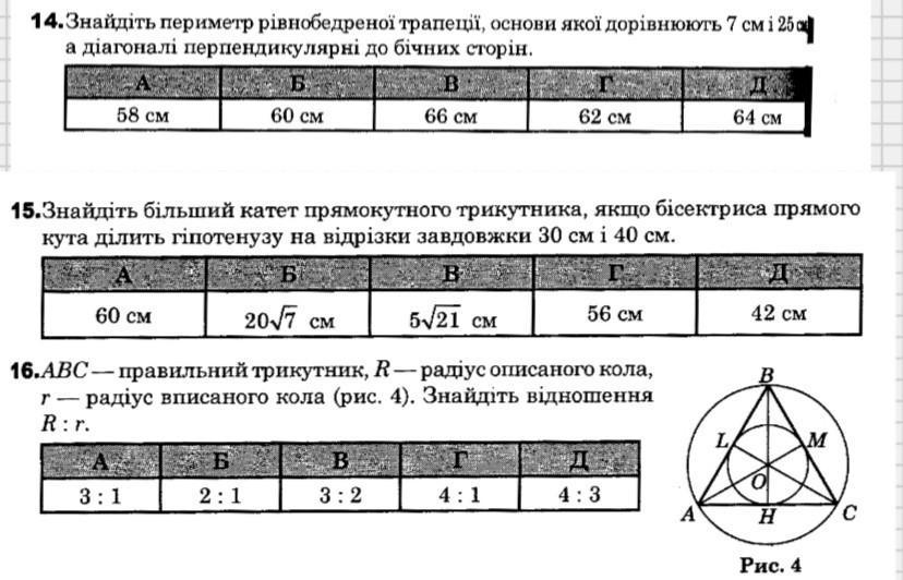 16. В равностороннем треугольнике центр вписанной и описанной окружностей совпадают. Так как т. в том числе и точка пересечения медиан, каждый из отрезков