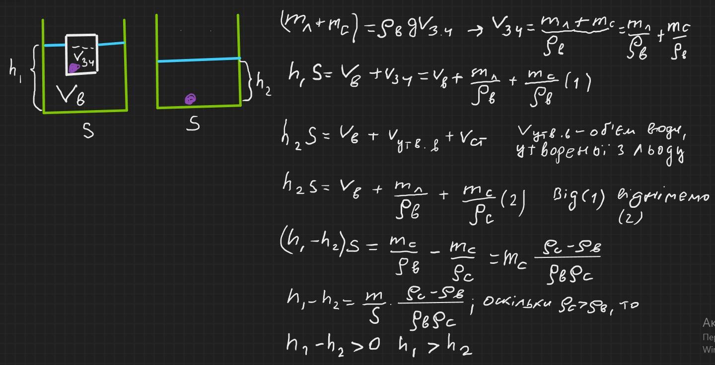 Шматок льоду плаває на поверхні води. Як зміниться рівень води у посудині після танення льоду, якщо: у лід вморожена сталева дробинка?