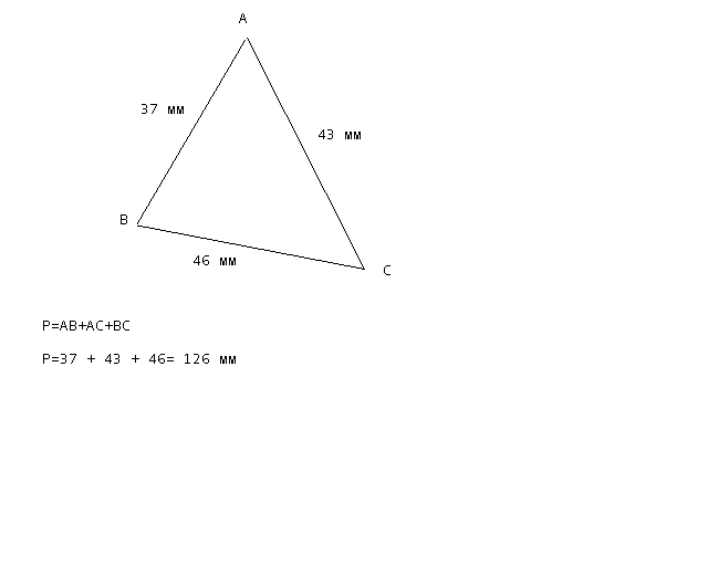 Начертить непрямой угол с вершиной точкой А.На одной стороне угла отложить отрезок АВ = 37мм,на другой стороне отложить отрезок АС = 43 мм. Соединить отрезком точки В и С . Найти периметр треугольника АВС ( ЕСЛИ МОЖНО ТО ПРИШЛИТЕ ФОТО!!!)
