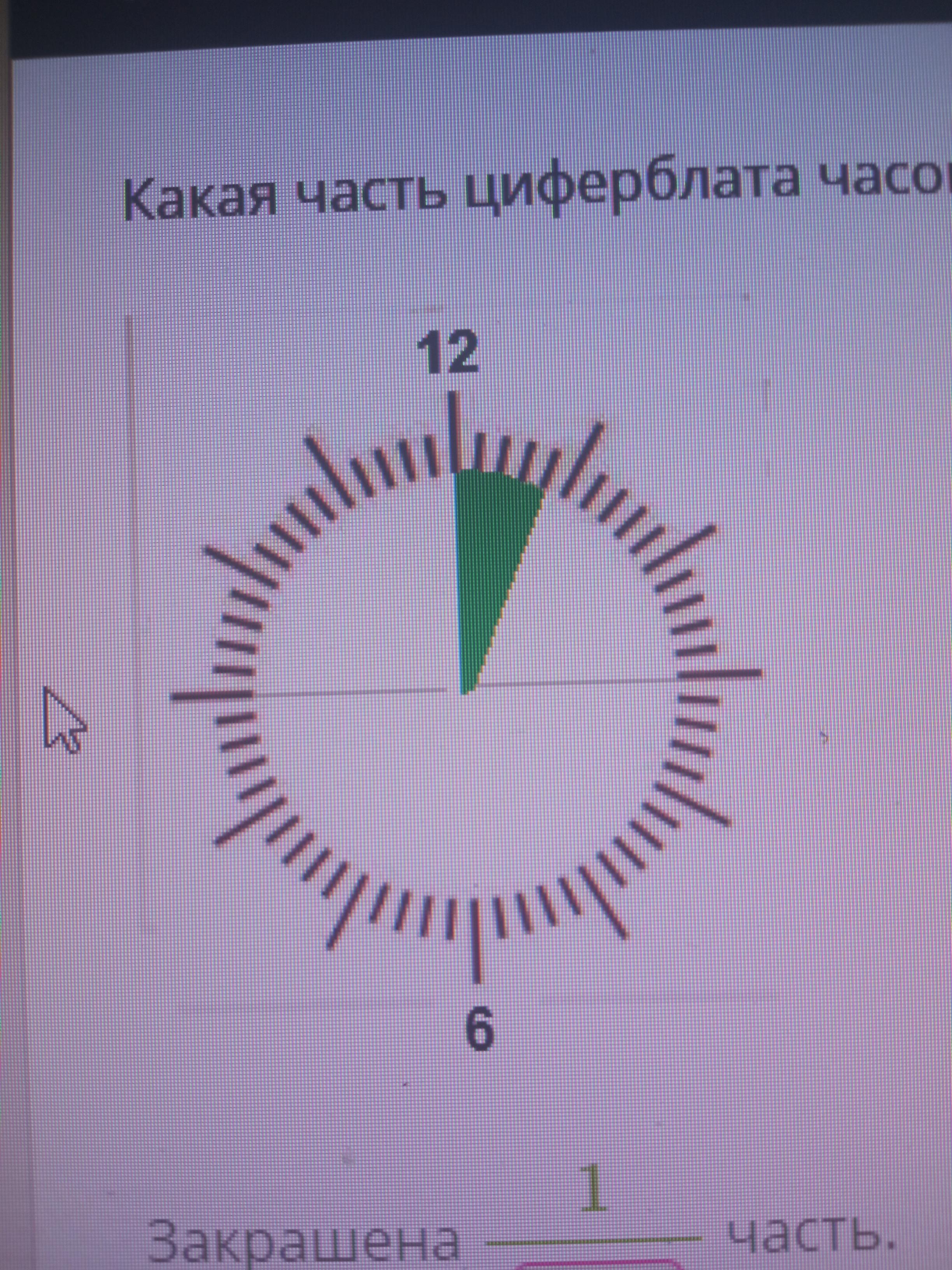 на циферблате 60 минут, закрашено 4 деления из 60,то есть закрашено 4/60 = 1/15 часть
