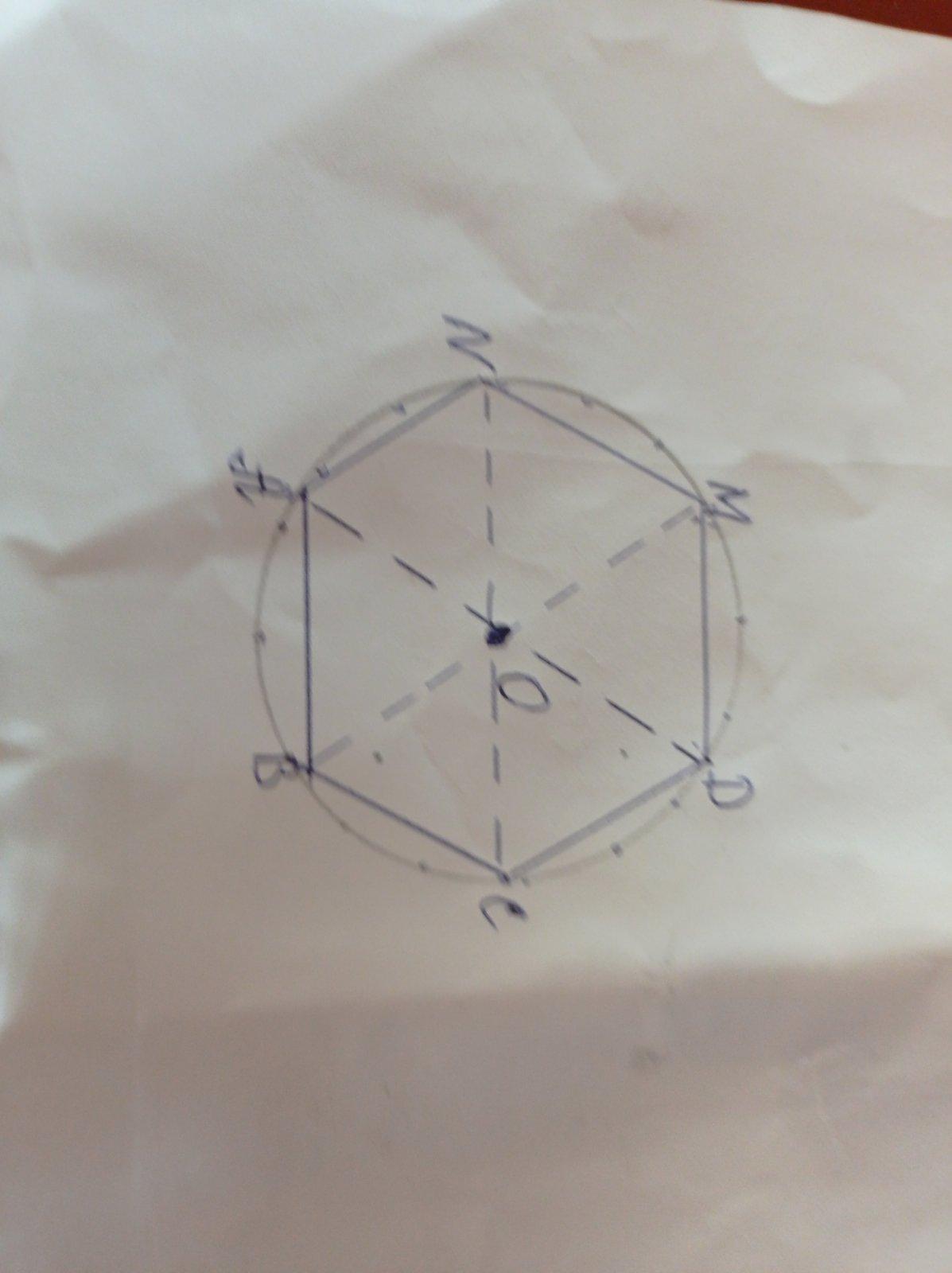 Діагоналі шестикутника AD, CN та BM ділять шестикутник на шість правильних трикутників зі стороною 18 см.