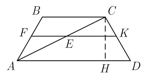 Діагональ рівнобічної трапеції ділить середню лінію у відношенні 5:9, а