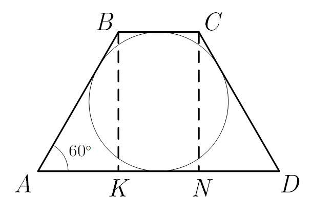 бічну сторону трапеції, якщо гострий кут при основі дорівнює 60градусів.