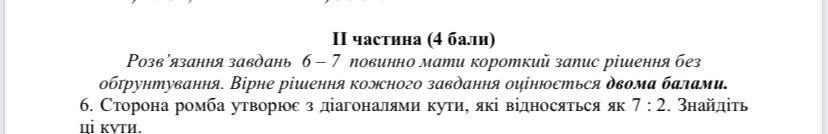 Диагонали ромба пересекаются под прямым углом и являются биссектрисами его углов. Поэтому острые углы одного из четырех прямоугольных треугольников, на которые диагонали разбивают ромб, относятся как .