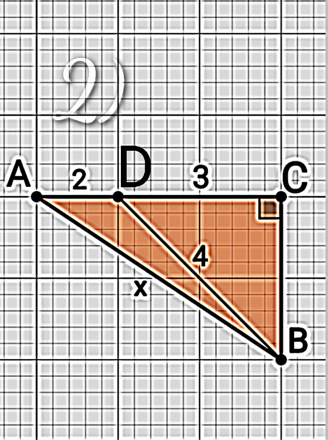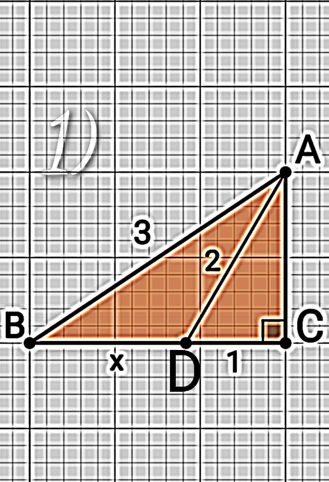 1) Дано: АВ=3, ВD=2, CD=1, ∠C=90°.