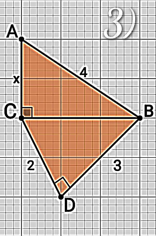 3) Дано: АВ=4, BD=3, CD=2, ∠C, ∠D = 90°