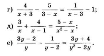 д) 3/x + 4/( x - 1 ) = ( 5 - x )/( x² - x ) ; ОДЗ : x ≠ 0 , x ≠ 1 ;