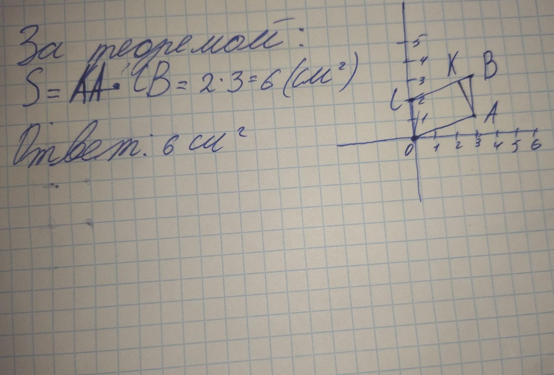 На координатной плоскости изобразите параллелограмм OABC, для которого 0(0; 0), А(3; 1), B(3; 3). Найдите его площадь.