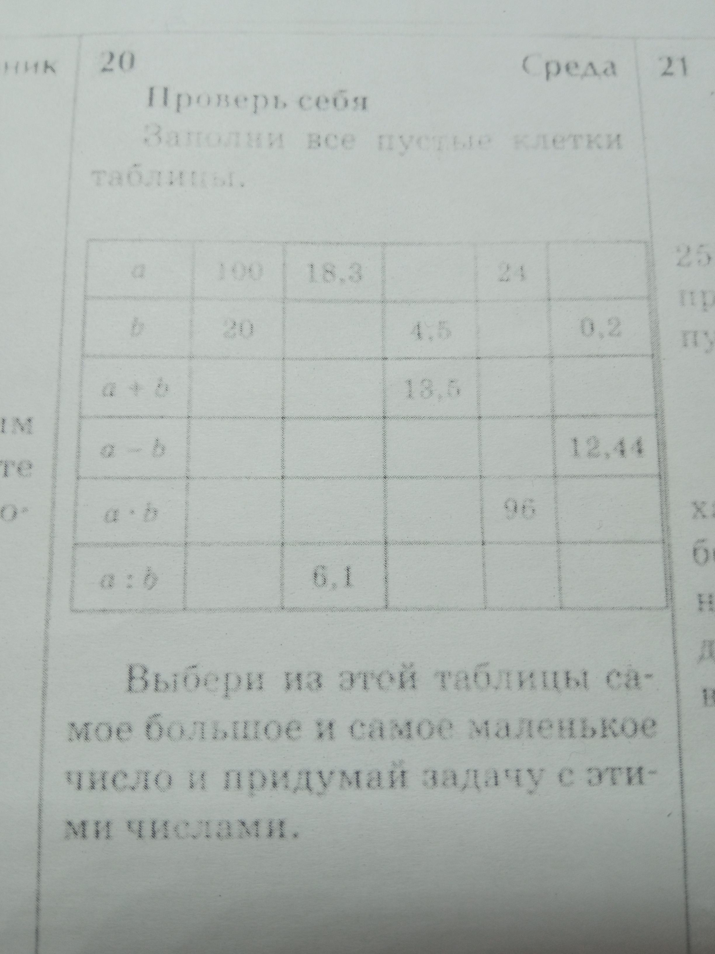 Выбери из этой таблицы самое большое и самое маленькое число и придумай задачу с этими числами