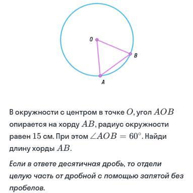 Значит, ΔАОВ - равносторонний, т.е. АО = ОВ = АВ = R = 15 см.
