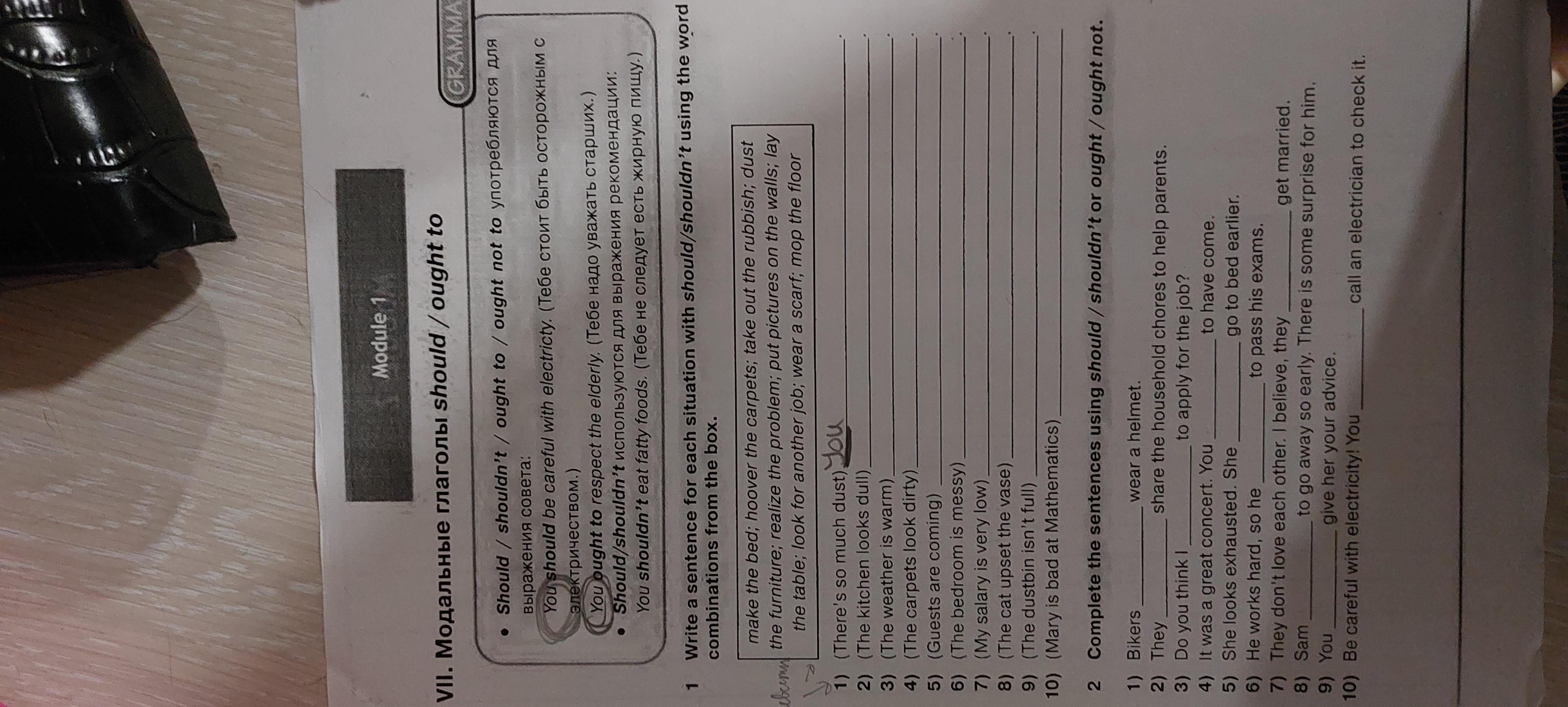 1. Bikers ought to wear a helmet. Байкерам надо надевать шлем.