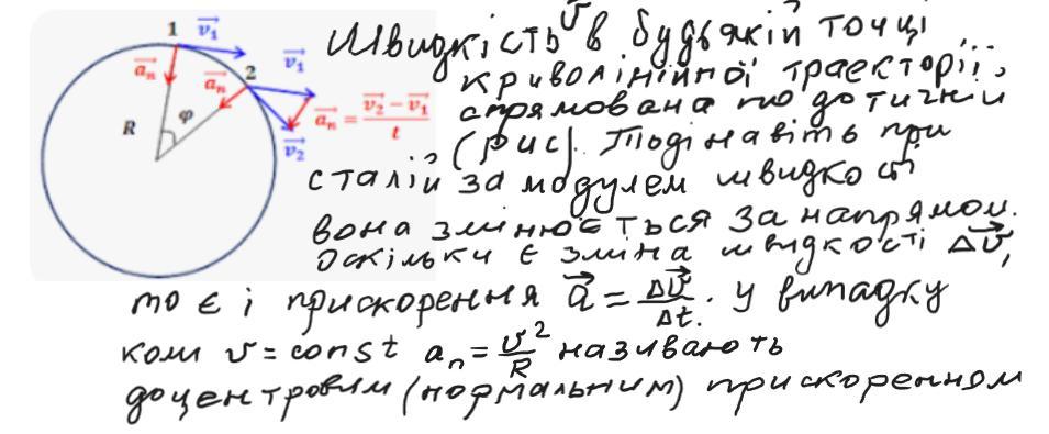 Чому ми говоримо про наявність прискорення матеріальної точки , якщо вона рухається по колу зі сталою швидкістю?
