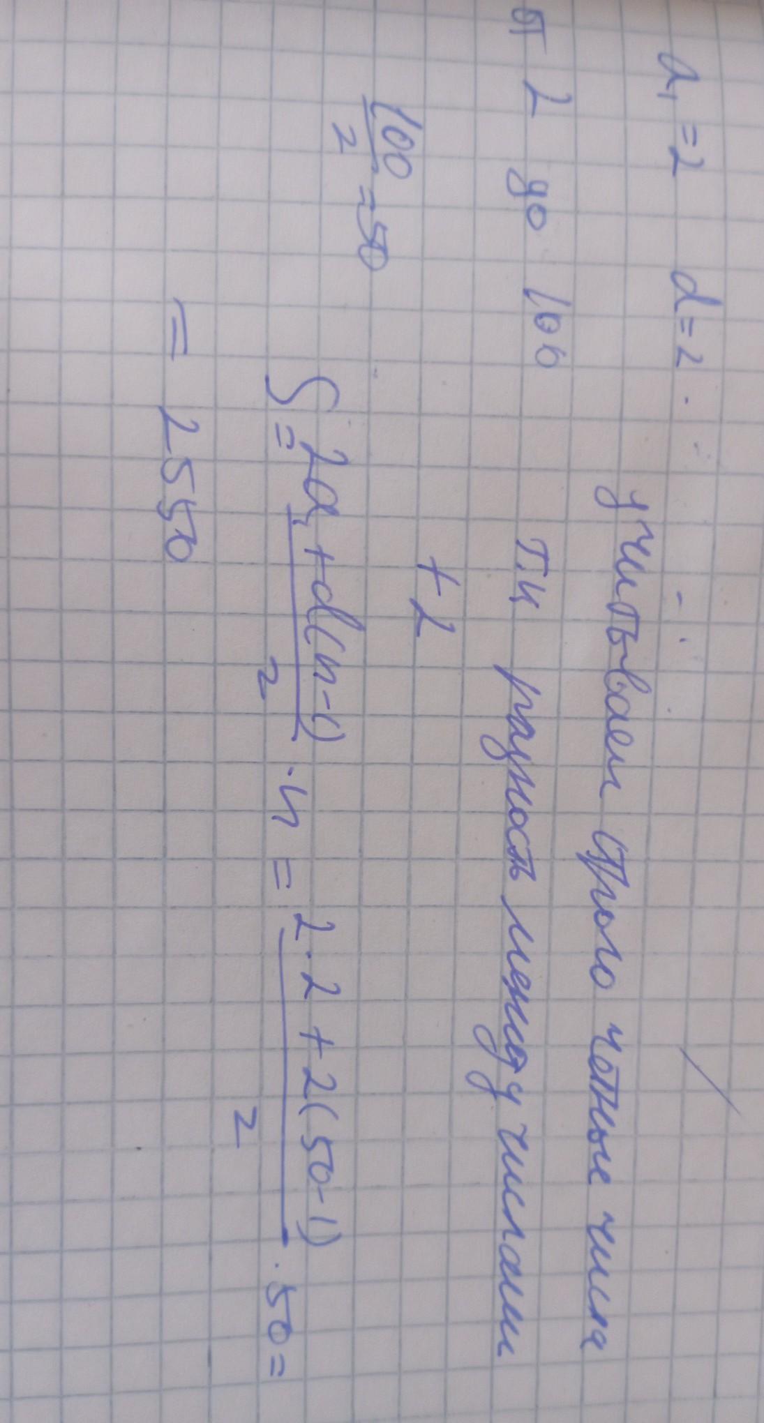 а1=2,d=2.учитвваем строго четные числа т.к разность между цифрами 2