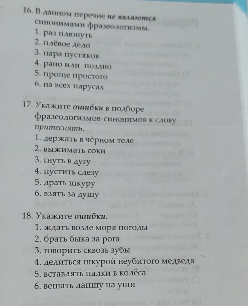 17. Укажите ошибки в подборе фразеологизмов к слову "притеснять".