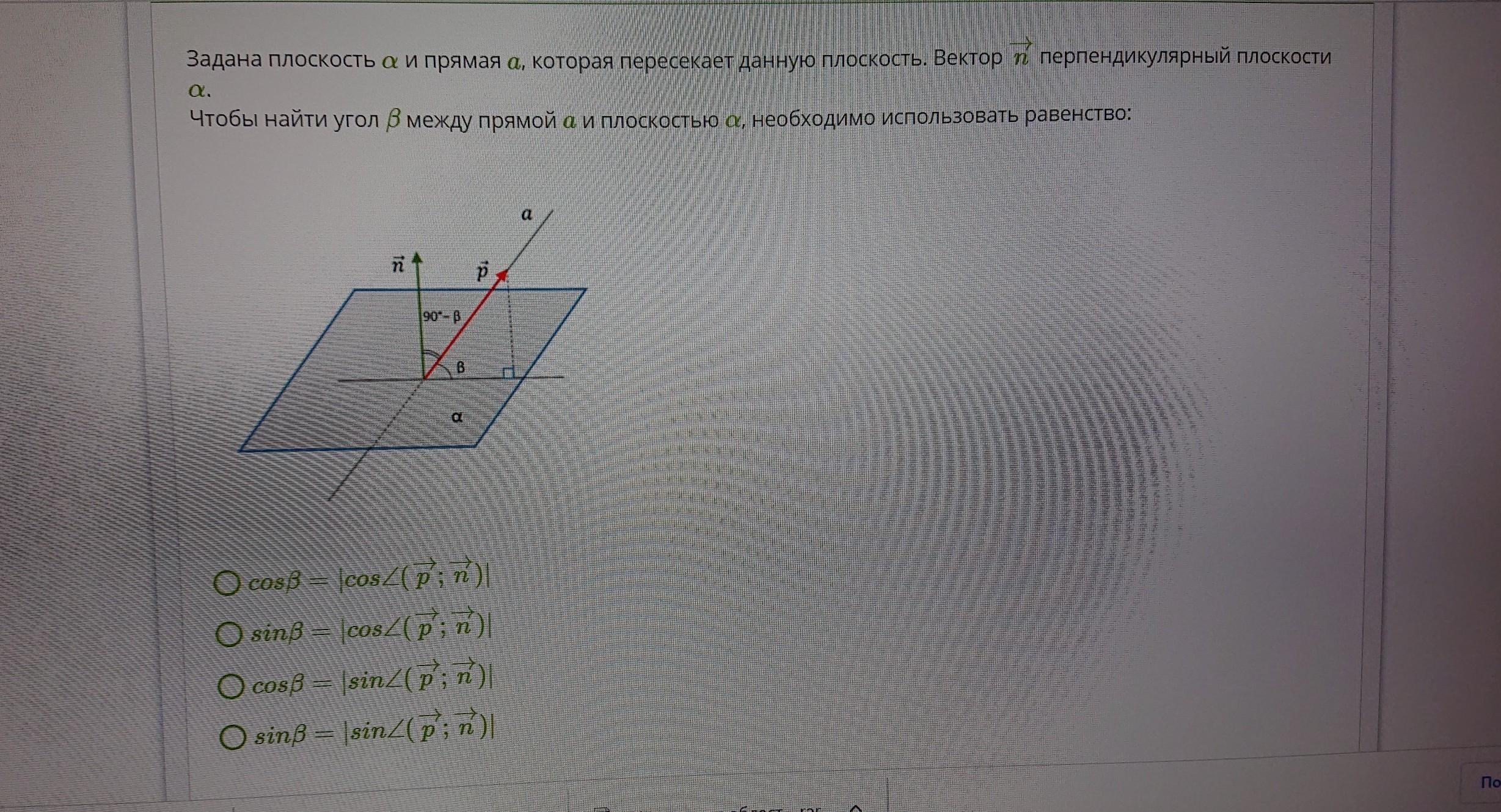 sinβ = | cos∠( p ; n ) | .