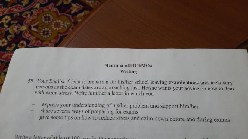 Здравствуй, дорогой друг! Экзамен - это очень ответственный шаг в твоей жизни. У тебя есть время, чтобы подготовиться к нему, поэтому не теряй его и начинай готовиться! Помни, что я всегда верю в тебя. Самое главное, что ты должен сделать, - это поверить в себя и в свои способности. Не отвлекайся от подготовки к экзамену, но и не забывай про отдых. Чтобы уменьшить стресс, нужно делать перерыв. Очень старайся, когда будешь готовиться к экзамену. Ты сможешь всё, если правда захочешь этого. Я верю в тебя! Удачи, дорогой друг!