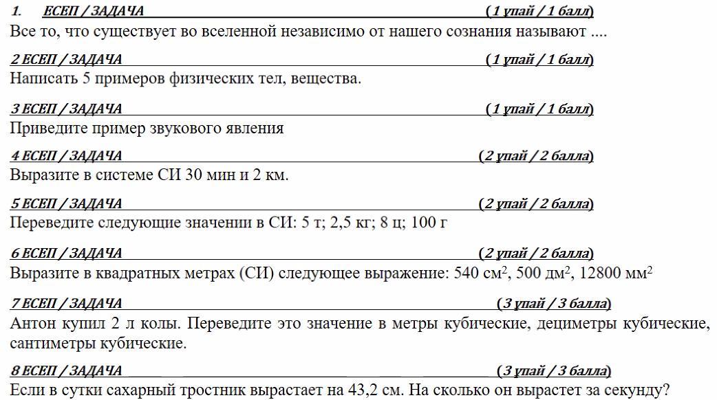 5) 5000 кг , 2.5 кг , 800кг , 0,1 кг