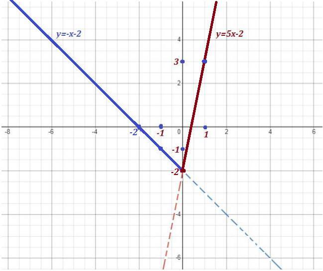 Рисуем прямую у=5х-2 и график оставляем только в правой полуплоскости , где .