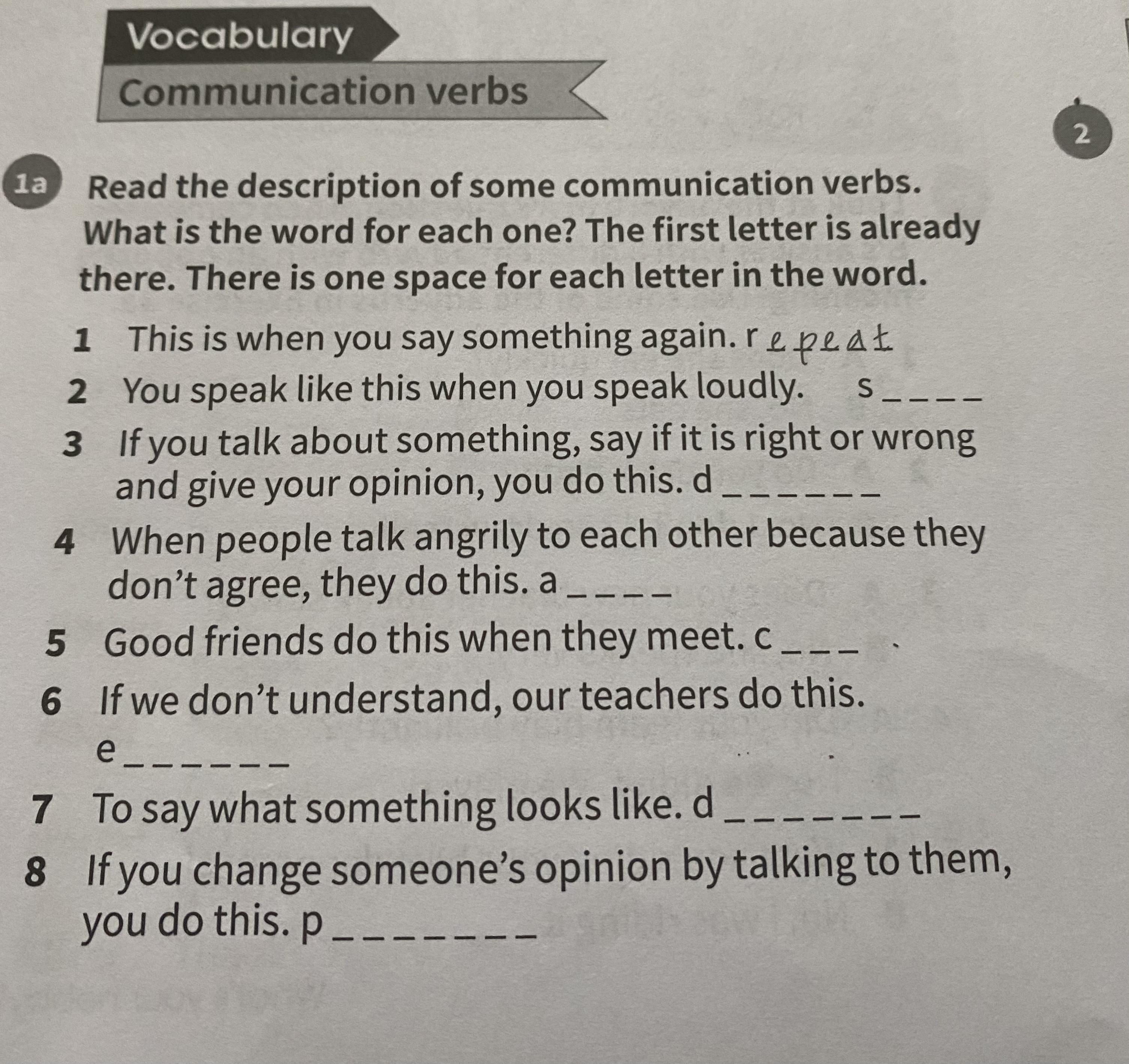 4. When people talk angrily to each other because they don't agree, they do this. -> argue