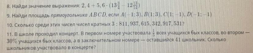 8) 2.4+5.6(13 3/4 - 12 13/14)=7.