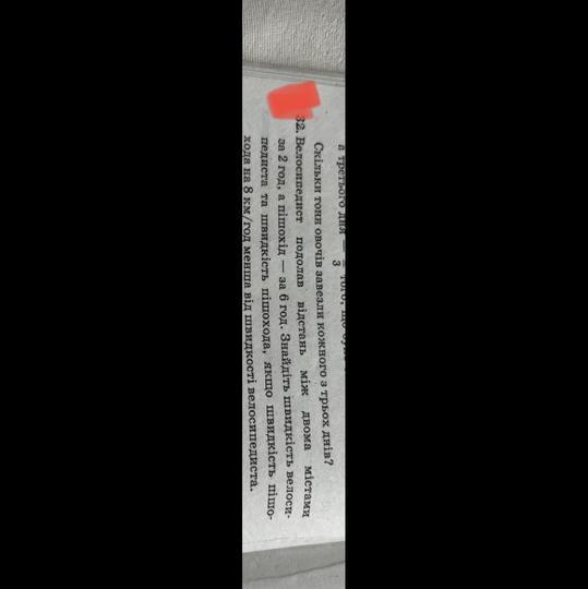 Нехай швидкість велосипедиста - х км за год, тоді пішохода ( х - 8 ) км за год