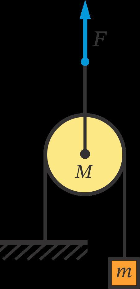 Какую силу F нужно прикладывать к оси блока в системе, указанной на рисунке, чтобы равномерно поднимать груз? Масса груза m=100 г, масса блока M=40 г. Трением в оси блока пренебрегите. Нити идеальные. Ответ дайте в Н, округлив до десятых. Ускорение свободного падения g=10 Н/кг.