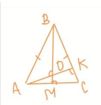 Высота ВМ в ранобедренном треугольнике является биссектрисой: