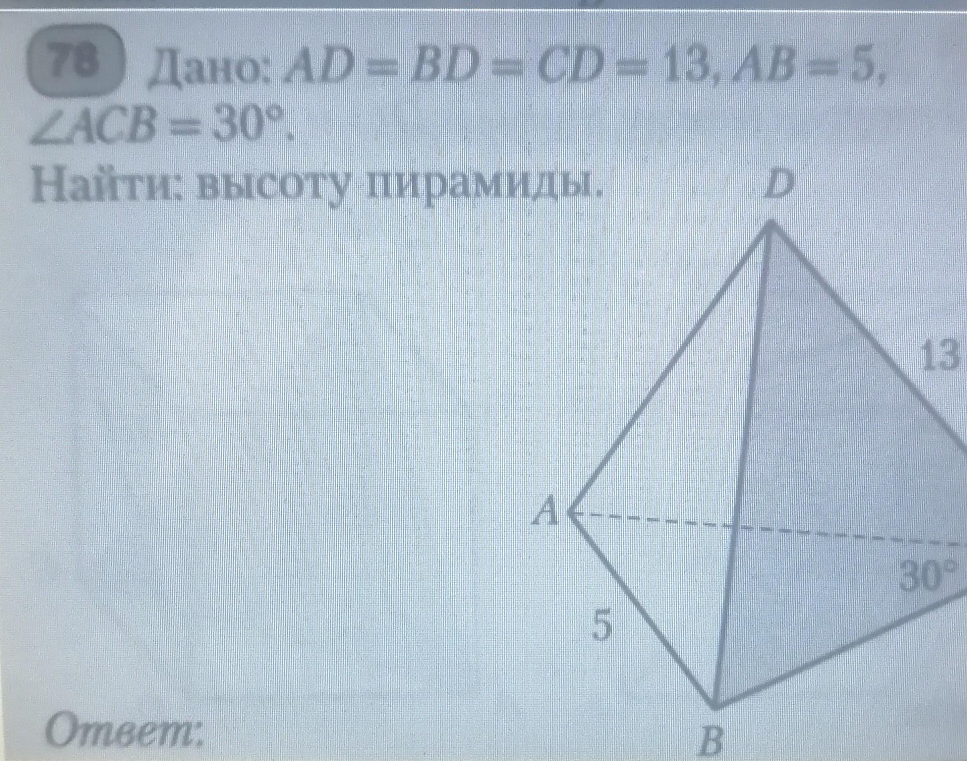 Пусть дана пирамида DАВС , DО -высота. AD=BD=CD =13