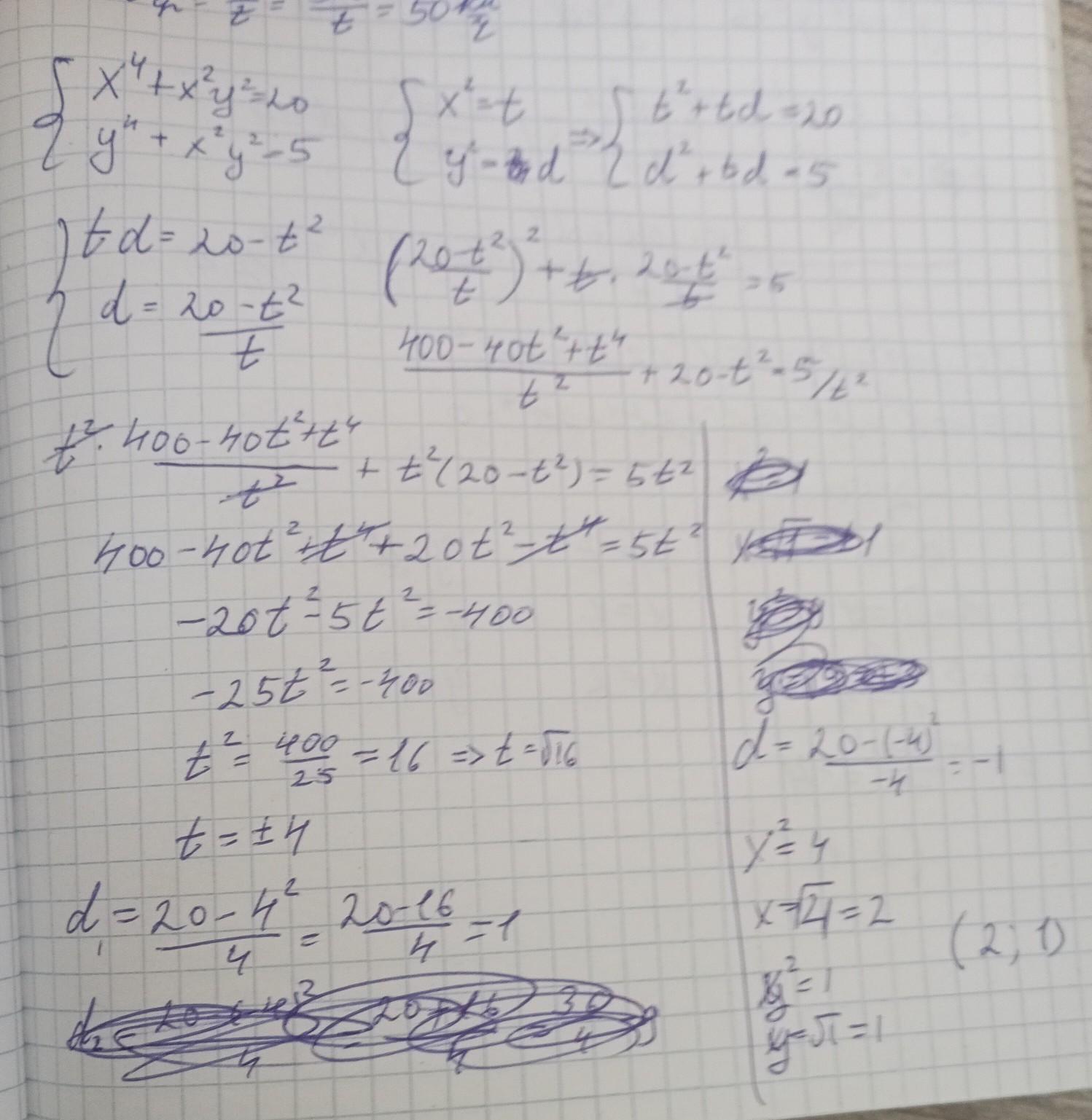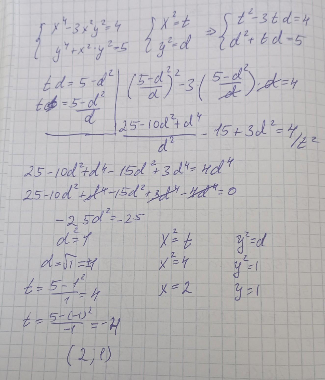 Что-то сложно... в) Сложим x^2+y^2=5: Вычтем x^4-y^4=15 или x^2-y^2=3; Значит x^2=4; y^2=1....