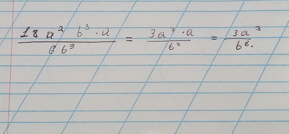 18a^2b^3*a/6b^9=3a^3/b^6.