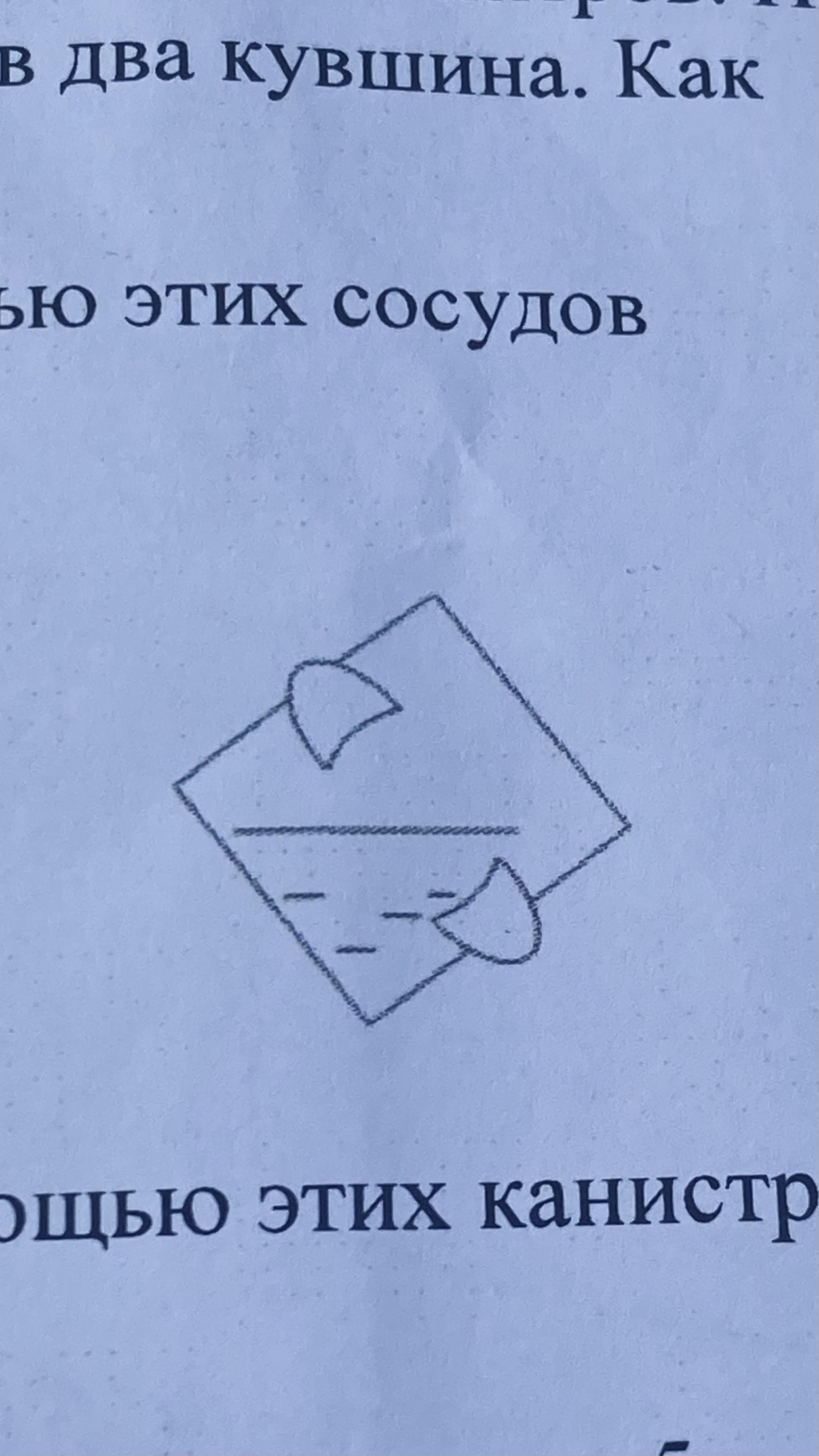 Чтобы отлить половину кастрюли, надо лаклонить ее так, как показано на рисунке.