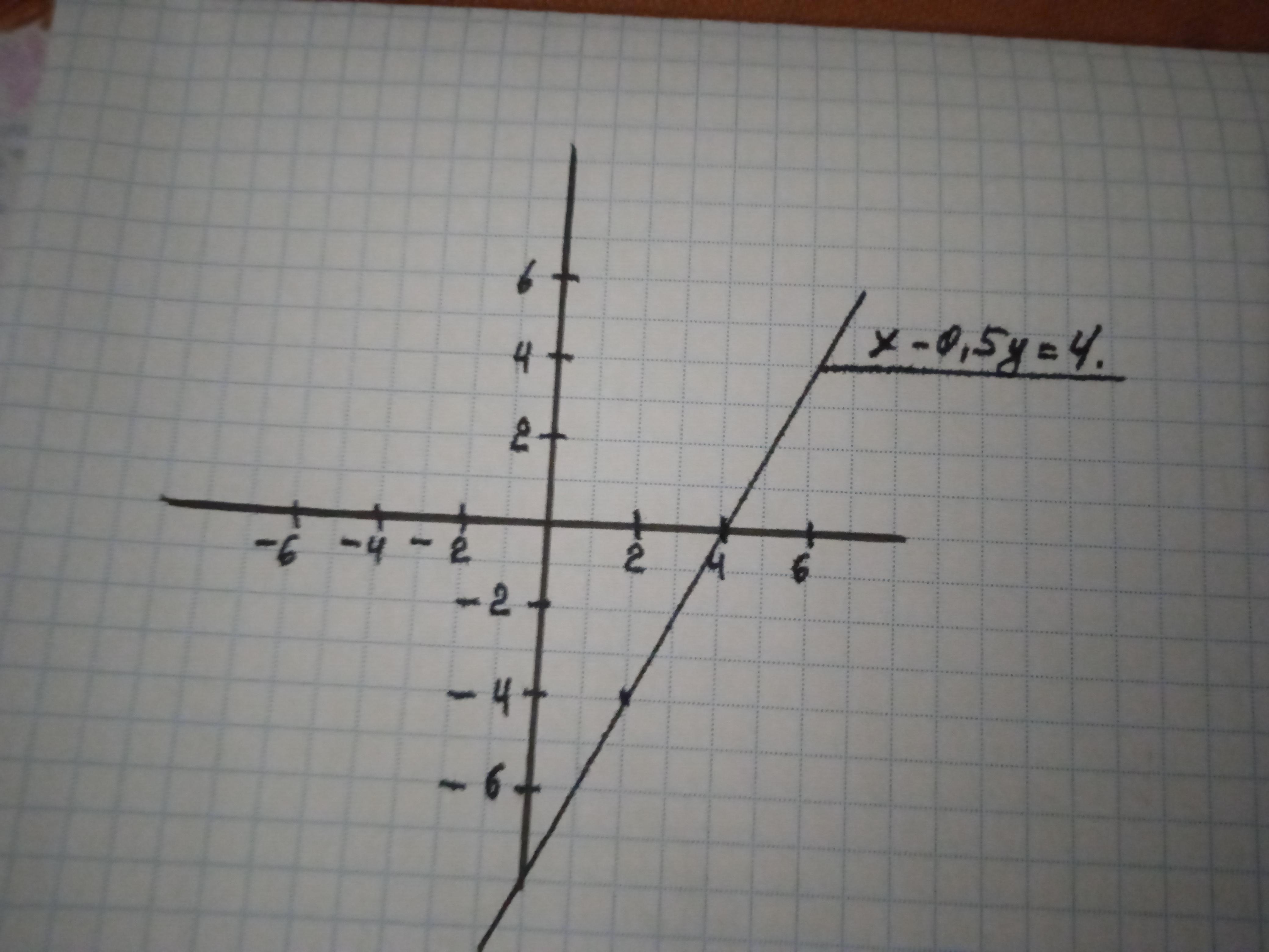 Графиком линейного уравнения с двумя переменными х-0,5у=4 является прямая.