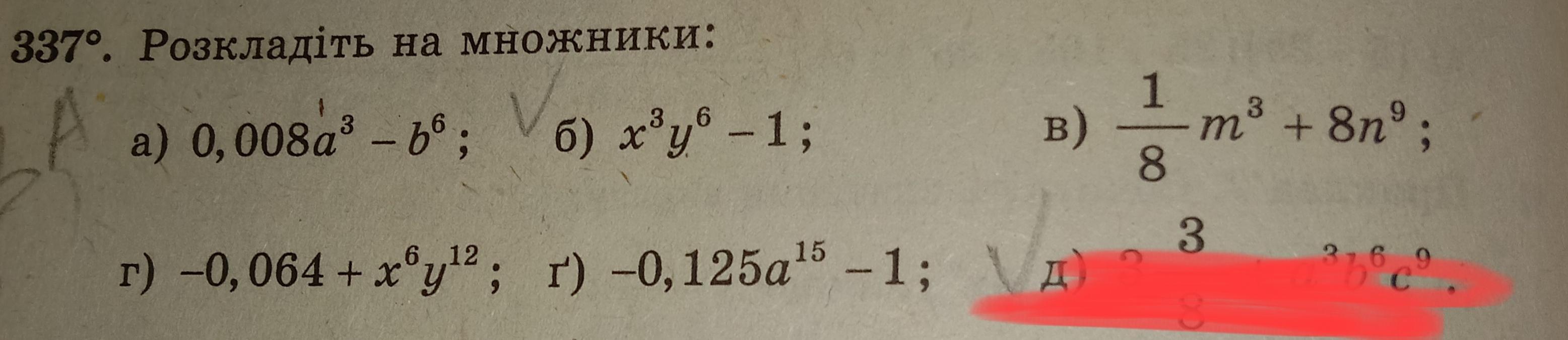 г) - 0,064 + x⁶y¹² = ( x²y⁴ - 0,4 )( x⁴y⁸ + 0,4x²y⁴ + 0,16 ) ;