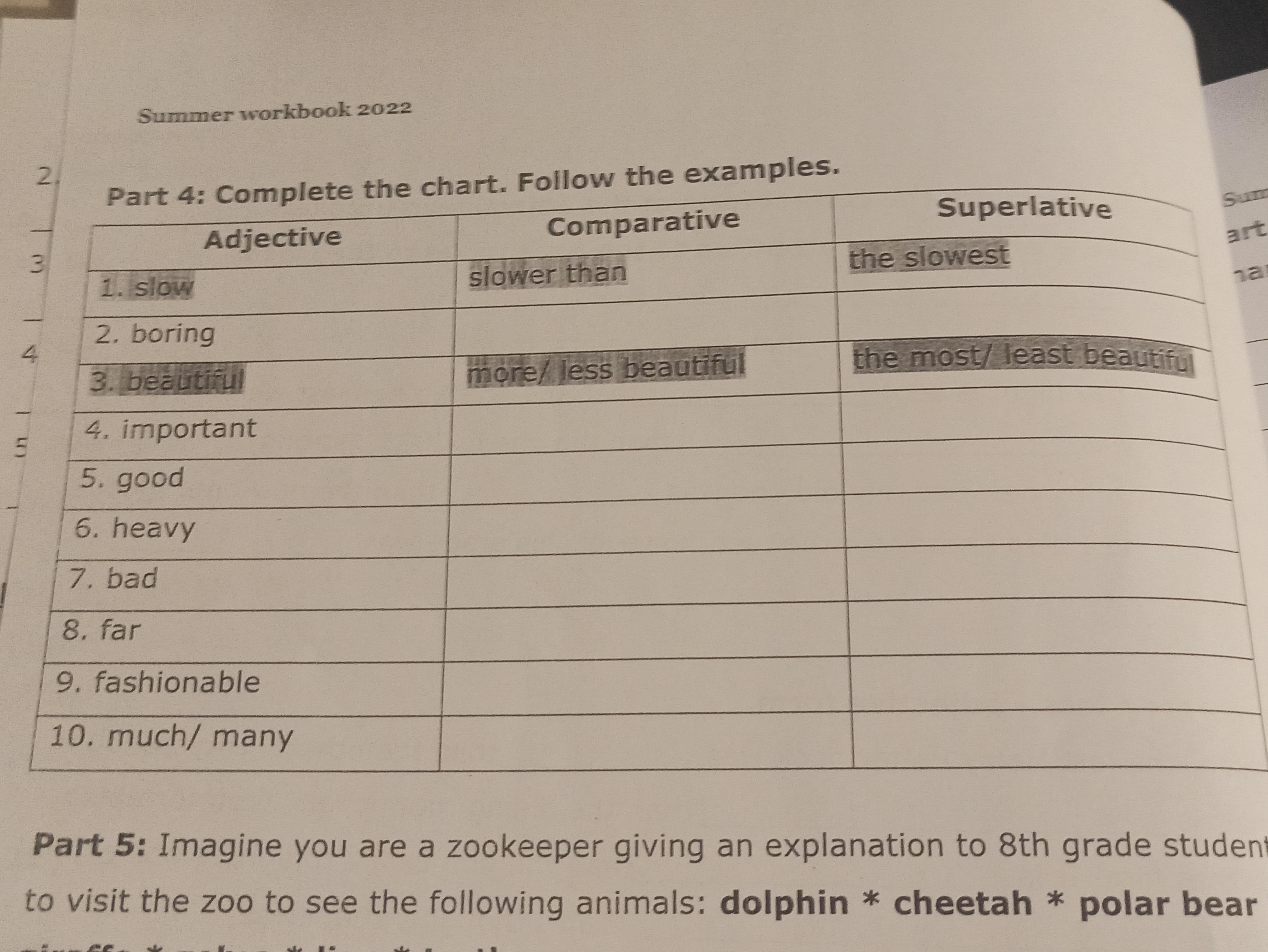 7. bad; worse than; the worst. 8. far; farther than; the farthest.