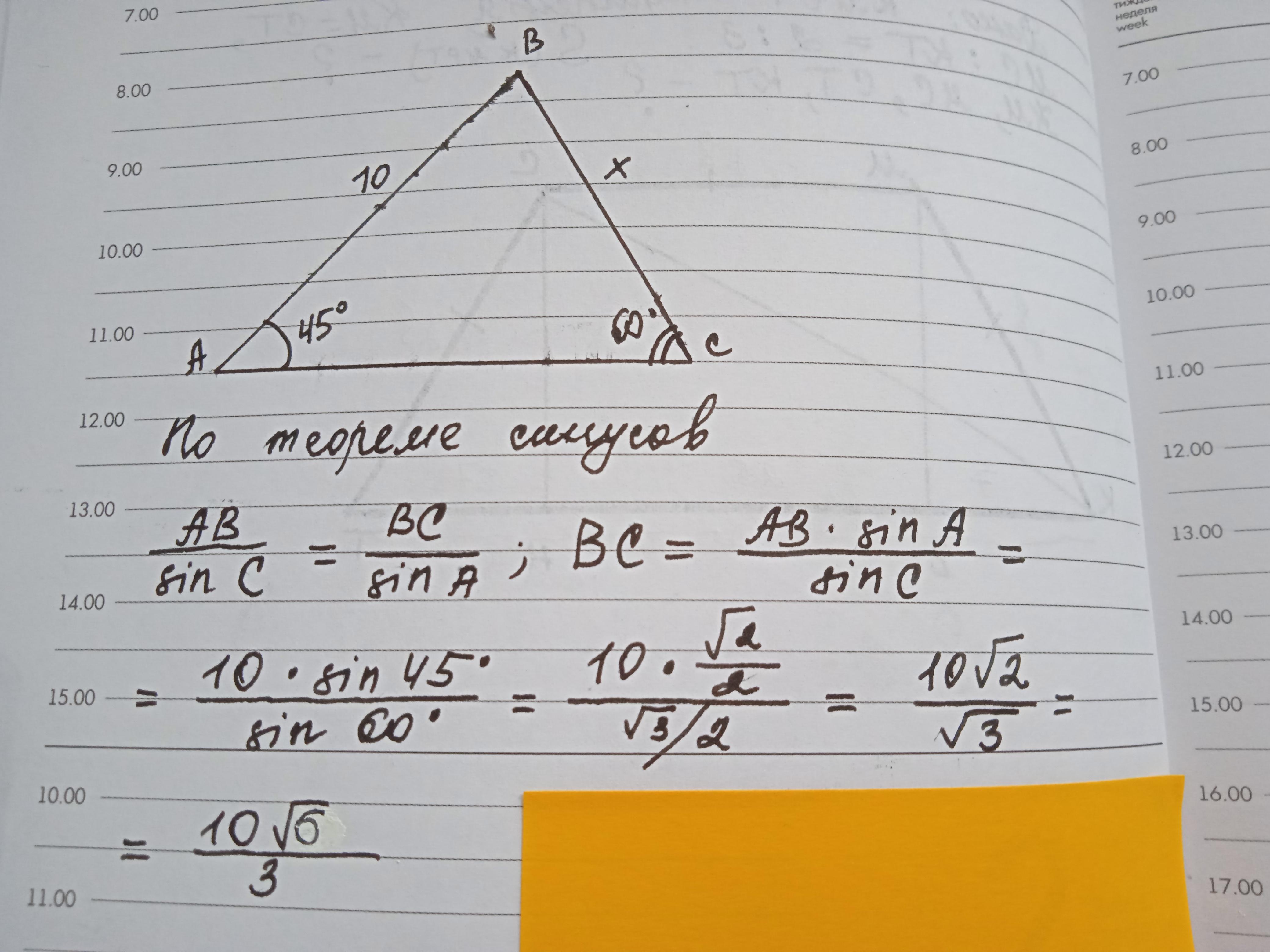 По теореме синусов отношения сторон к синусам противоположных углов в треугольнике равны. Значит