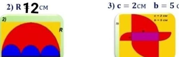2) Площадь красной фигуры равна разности площадей полукруга с R=12 см и трёх одинаковых полукругов с r=12:3=4 см .