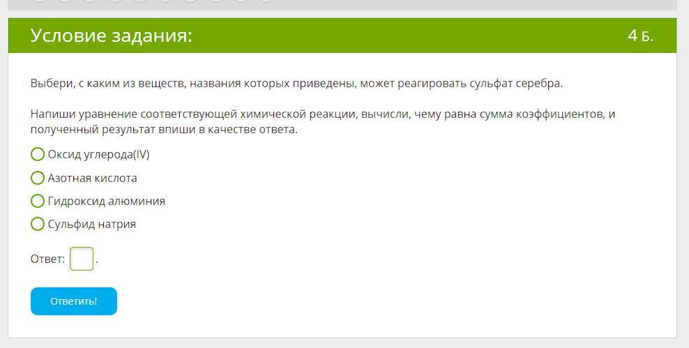 Выбери, с каким из веществ, названия которых приведены, может реагировать сульфат серебра.