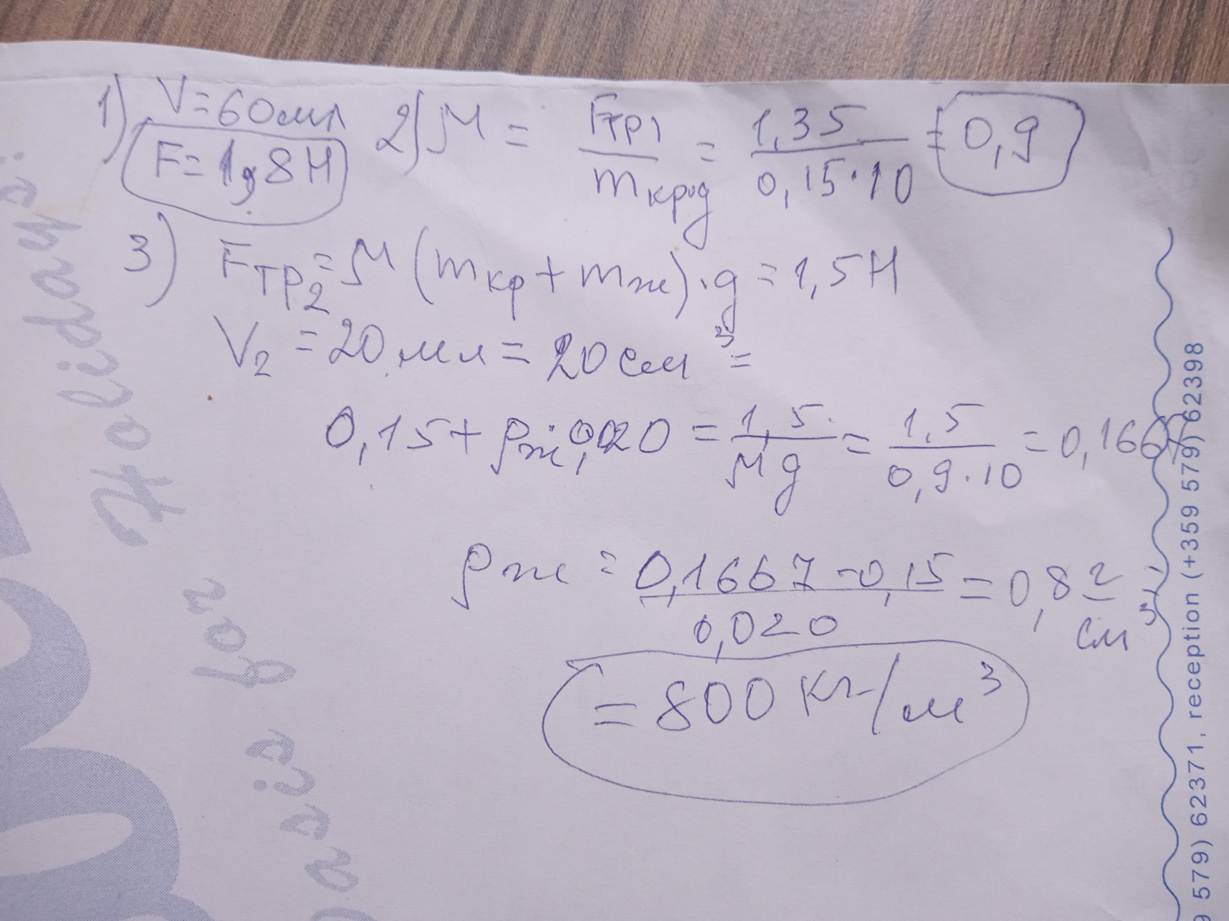 Ученица проводила эксперимент по измерению силы трения скольжения.