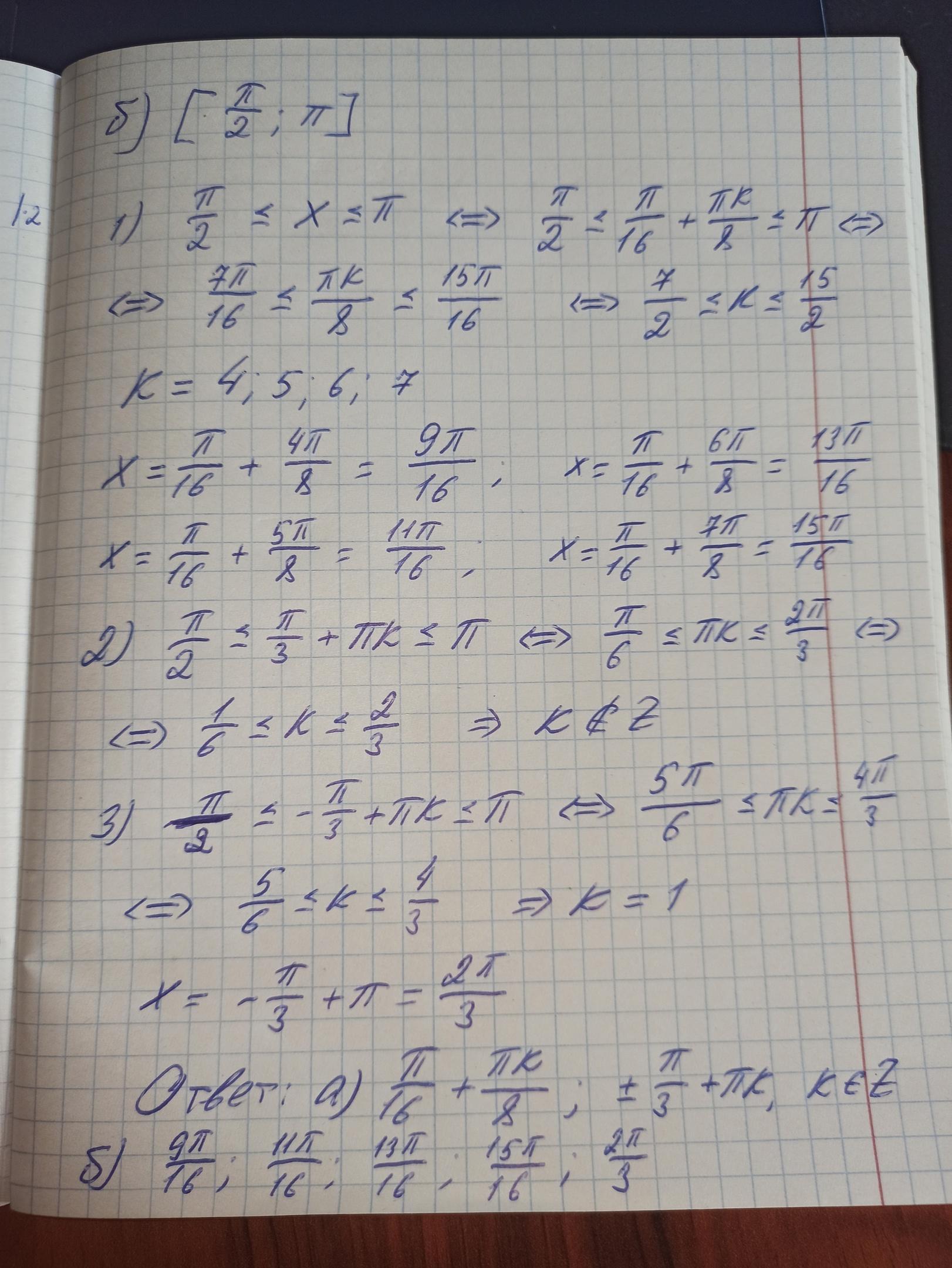 Б) Найдите все корни уравнения, принадлежащие отрезку [П/2;П]